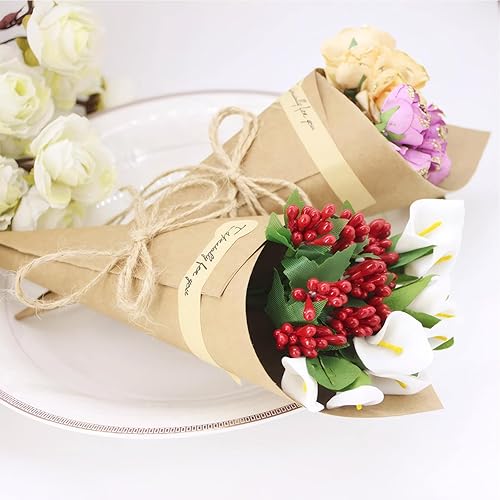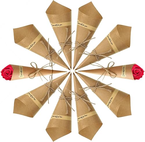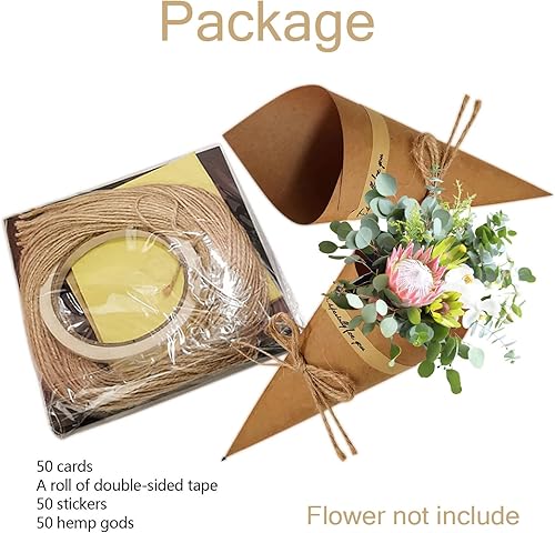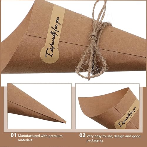 50 Pièces Mariage Cône En Papier, Cône de Confettis en Papier Kraft Rétro, avec Ficelle et Autocollants, pour Assiettes de Fleurs de Bonbons et Confettis, pour Décoration de Mariage (Kraft Papier)