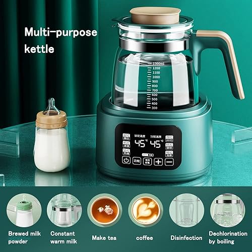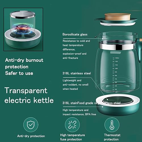 GLORYSAT Bouilloire en verre de 1,3 L, température constante de 72 h, contrôle par écran tactile, rose