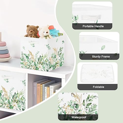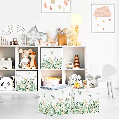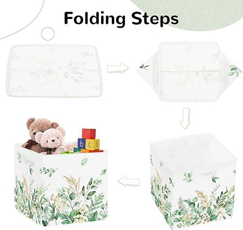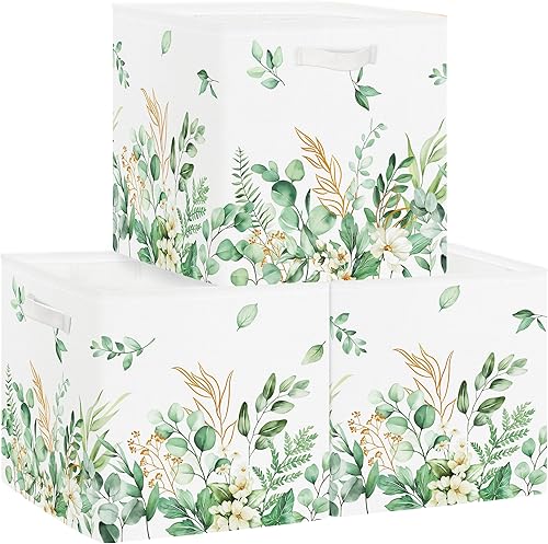 Clastyle Boîtes de Rangement Lot de 3 Fleur Paniers de Rangement Cube Feuilles Plantes Adulte Enfant Pliables Coffre à Jouets Femmes Filles pour Étagères Livres,Vert,30x30x30 cm