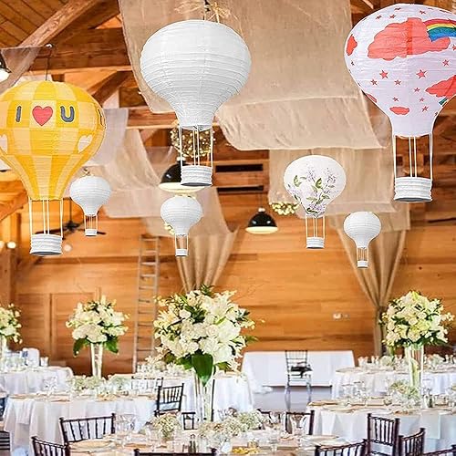 Srcasy 6 Pièces Lanterne Montgolfière Papier, Lanterne en Papier Montgolfière Blanche, Suspendre Lampions Montgolfière, pour Fête de Mariage, Centre Commercial, Décoration Artisanale