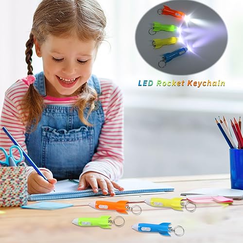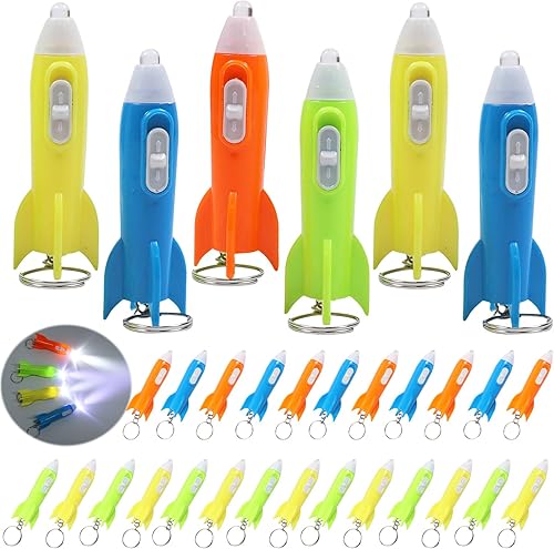 Lot de 30 mini lampes de poche fusées porte-clés pour enfants, petit cadeau d'anniversaire d'enfant, prix tombola, sac surprise pour enfants, petits sacs cadeaux, sacs à main, ornements de sac à dos