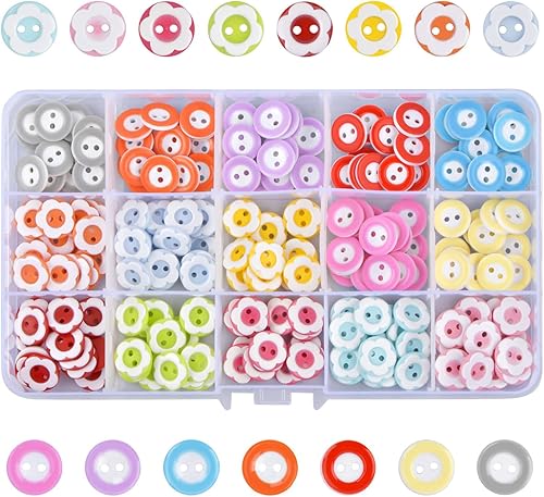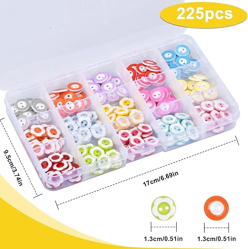 Boutons, 225 Pièces 12 mm Ronds Boutons Enfants à Coudre, Boutons Couture Rond,2 Trous Boutons de Couture Colorés Artisanat Bouton, pour Couture Ornement Fait à la Main Artisanat Bricolage