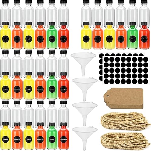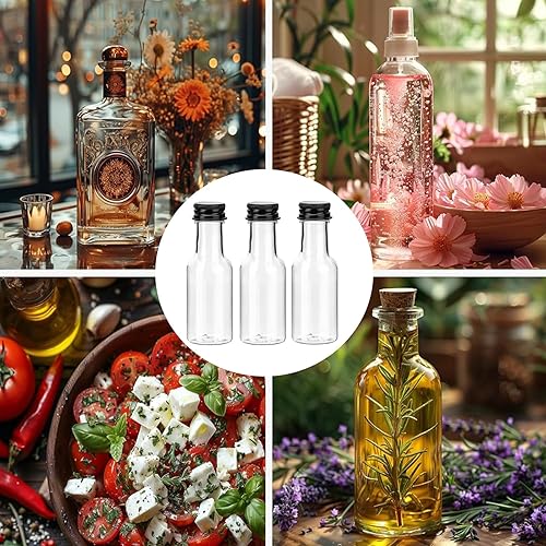 Bouteilles de Liqueur en Plastique,YouXiaor Lot de 60 petites bouteilles de 30 ml à remplir mini bouteilles réutilisables à remplir Mini Bouteille Miniatures avec Étiquettes Ficelle pour Mariage Fête