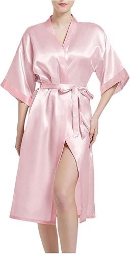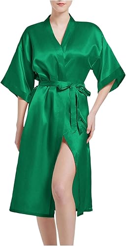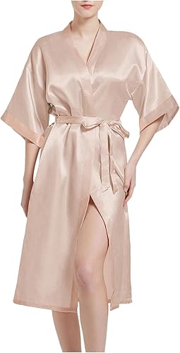 MODSGUE Peignoir kimono en satin pour femme - Léger - Japonais - Col en V - Peignoir de bain - Pyjama confortable - Long pyjama en soie pour mariage