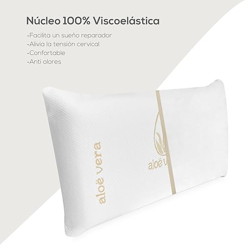 DUÉRMETE ONLINE - Oreiller viscoélastique Aloe Vera Visco | Confort Maximal et Excellente adaptabilité avec propriétés Anti-Stress | 90 x 40 cm