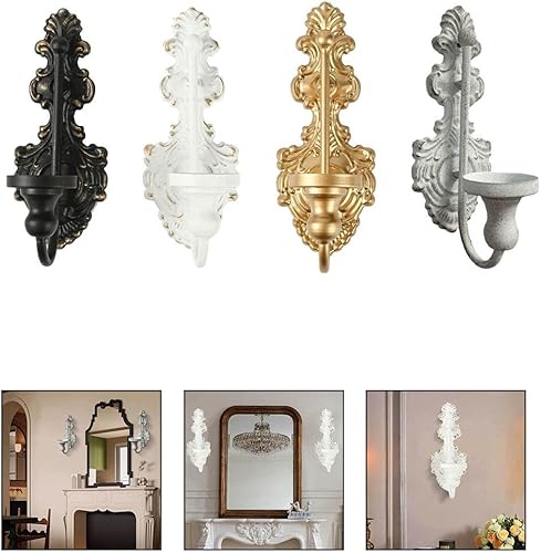 Entgoinggo Bougeoir mural en fonte pour salon, décoration murale vintage (blanc)