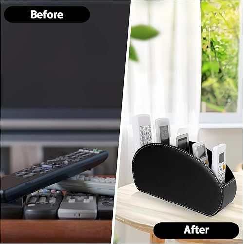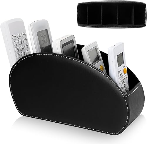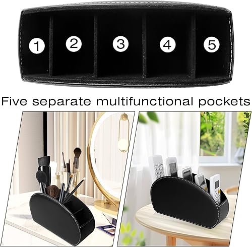 PRITOK Support de télécommande avec 5 poches - En cuir synthétique - Grand support pour TV, DVD, clé 4K et télécommandes Bluray - Organiseur de bureau pour stylos, téléphone portable