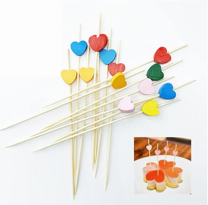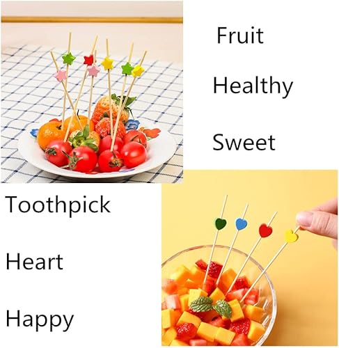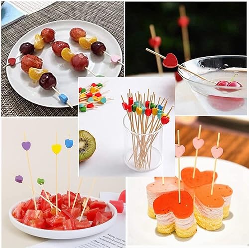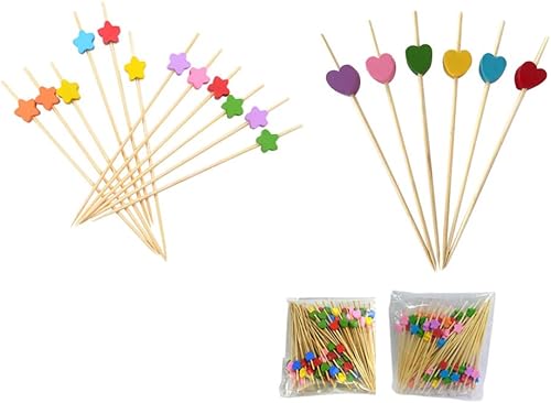 Bâtonnets Cocktail, 200 Pièces Bambou Bois Bâton de Cocktail, Cure Dent Decoratif Aperitif, Cure-Dents en Bois Pics à Cocktail en Bambou, Sertie de Coeur, Fruit, Flamant Rose, pour Bar, Fête.