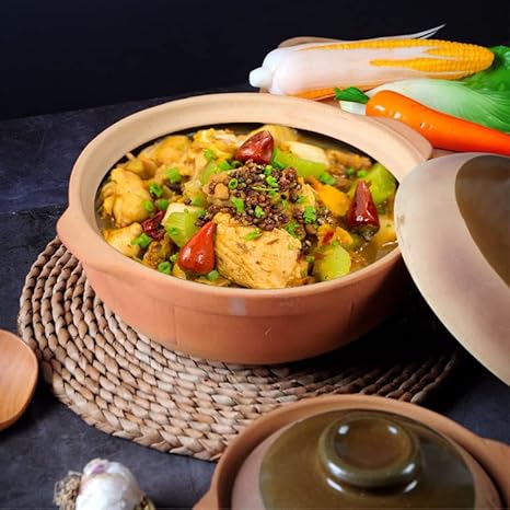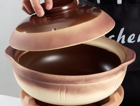 Cocotte de poterie rétro en argile avec couvercle Shaguo (poignée DR19 cm)