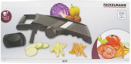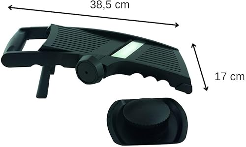 Fackelmann 45338 Mandoline réglable, mandoline manuelle, mandoline, tranche légumes, Plastique, Acier Inoxydable, Noir, 38,5 x 17 x 12,5 cm