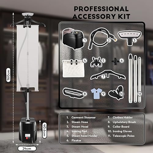 CGOLDENWALL 2000W Defroisseur Vapeur Vertical, 3.2L Réservoir d'Eau Amovible, Prêt en 45s, 2 Réglages des Vapeur pour Tous les Tissus - avec Accessoires et Hauteur Ajustable