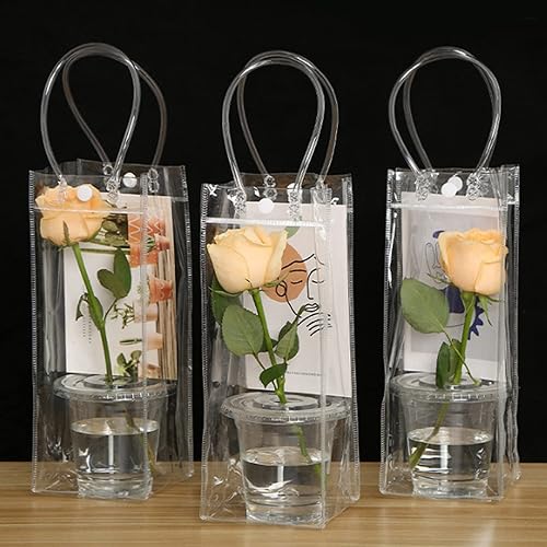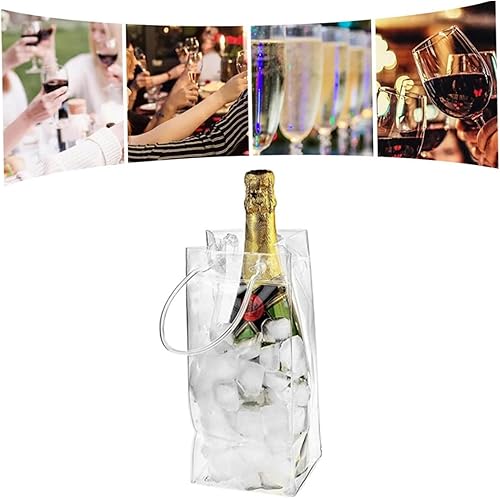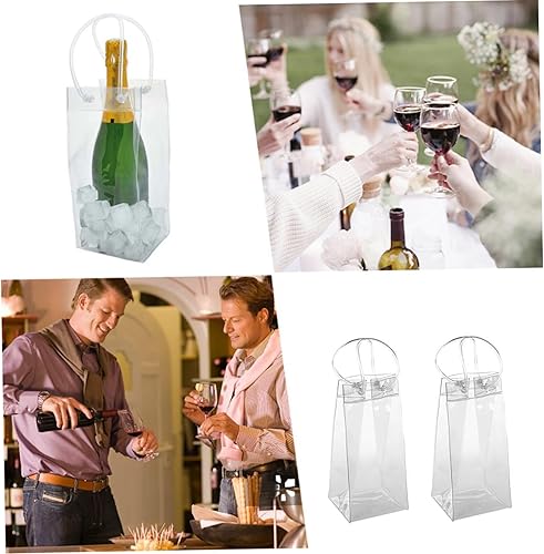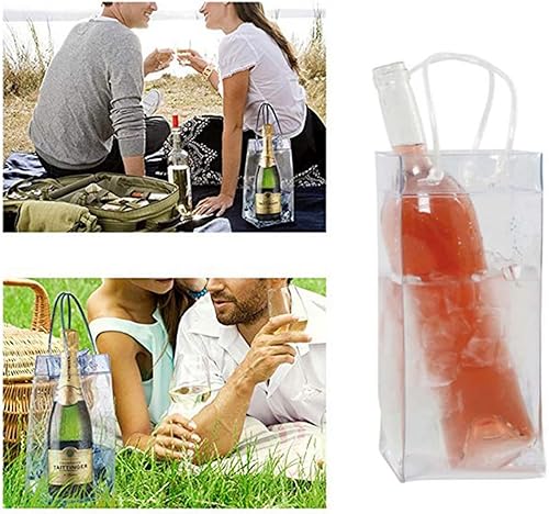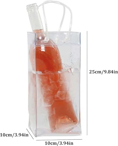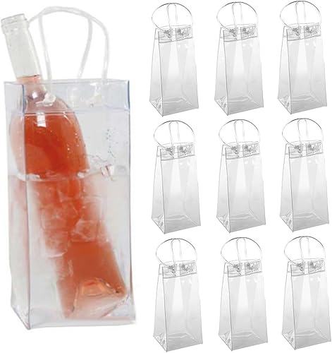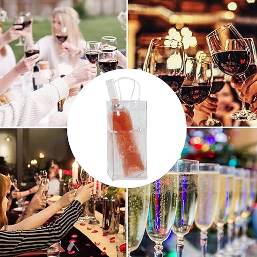 Sac à vin de glace, sac froid à vin agne, sac de refroidisseur de poche 10pcs PVC transparent transparent avec poignée, 9,8x3,9 pouces agne Sac avec poignée pour la bière Party Outdoor