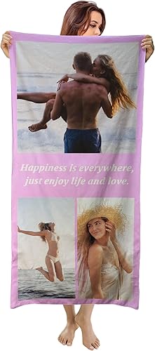 Le'qu bay Personnalisé Serviette de Plage,Serviette de Plage Douce et Confortable et Anti Sable et Personnalisable Photo et Texte. Séchage Rapide Légère,Adaptée pour - Plage,Natation, (Photo-1)