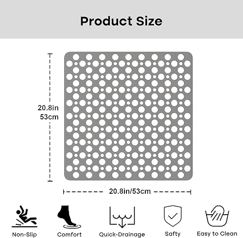 XIYUNTE Tapis de douche carré antidérapant et anti-moisissure pour personnes âgées, 53 x 53 cm, tapis de douche antidérapant pour douche intérieure, tapis de douche antidérapant, tapis de douche avec