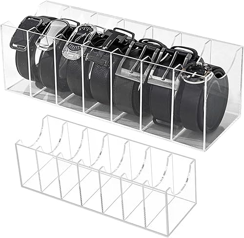 Organisateur de Ceinture en Acrylique Porte-Courroie Transparent avec 7 Compartiments Organisateur de tiroir pour Le drafier à Placard Montres à Cravates