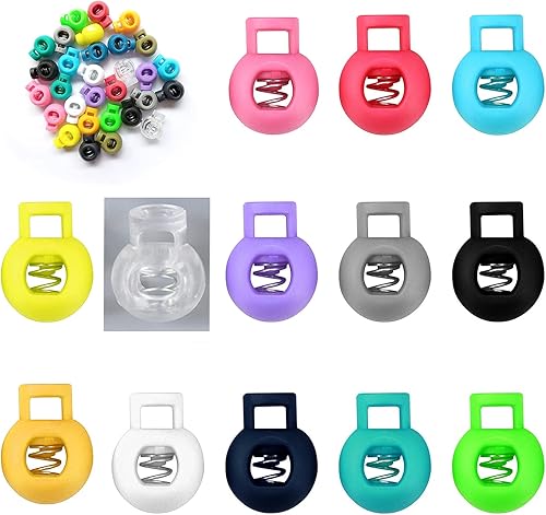 Verrouillage du Cordon,50 Serrures Ressort Bouton Pression Plastique Arrêts à Ressort Fermeture Rond Serrures Cordon,pour Vêtements,Sacs à Dos, Lacets,Artisanat,Cordelette,Elastique(Multicolore)
