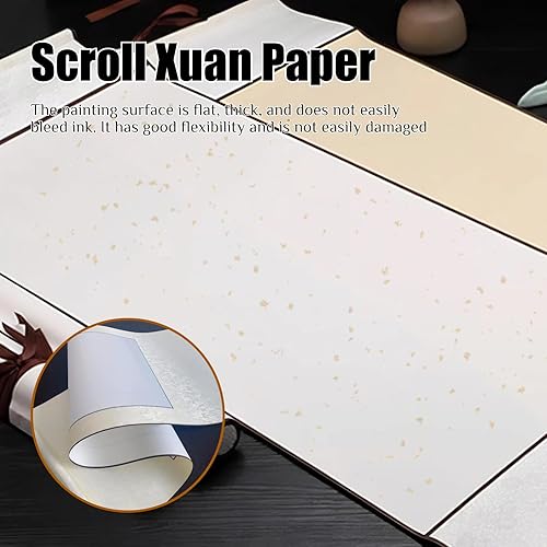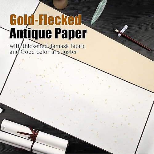 Hugwish 2pcs Rouleau Calligraphie Chinoise Peinture 80x30cm, Rouleaux Xuan Papier De Riz Mural (or)