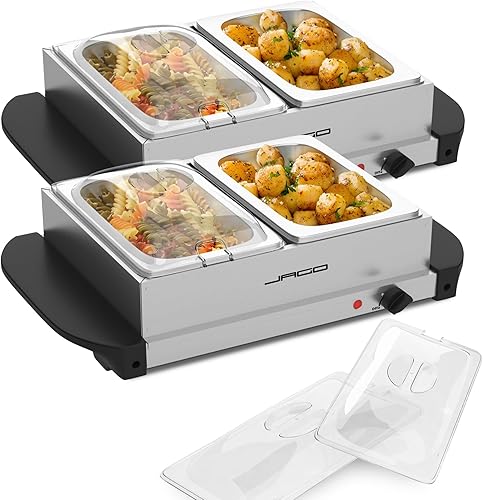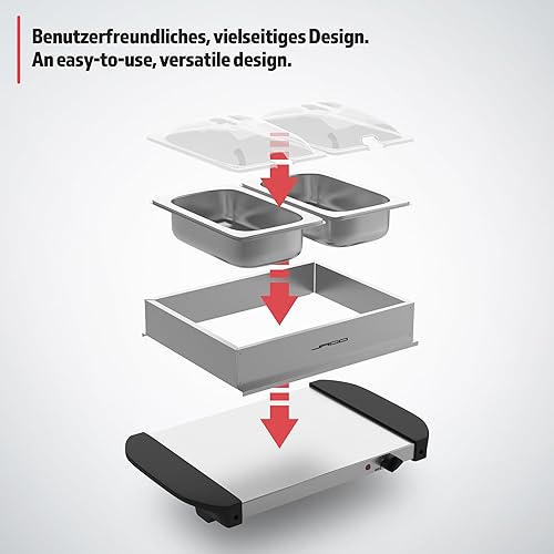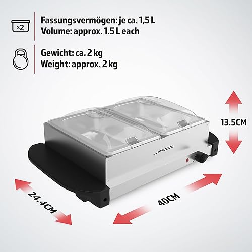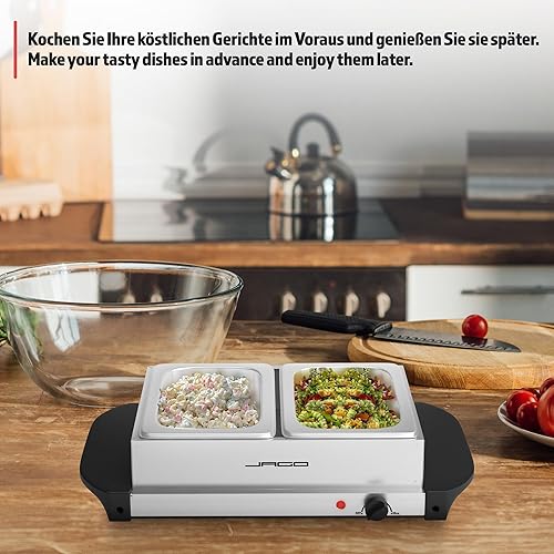 Jago® Chauffe-Plats Électrique - en Acier Inoxydable, Maintien de la Température, Couvercles Transparents - Chauffe-Buffet, Chafing Dish (4 Récipients / 4 x 1.5L (6L))