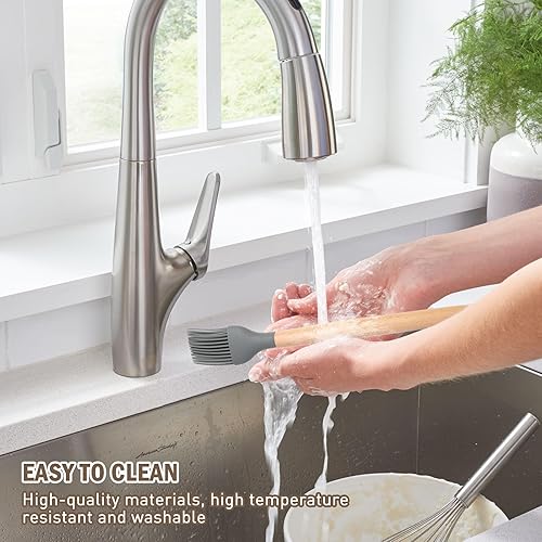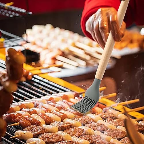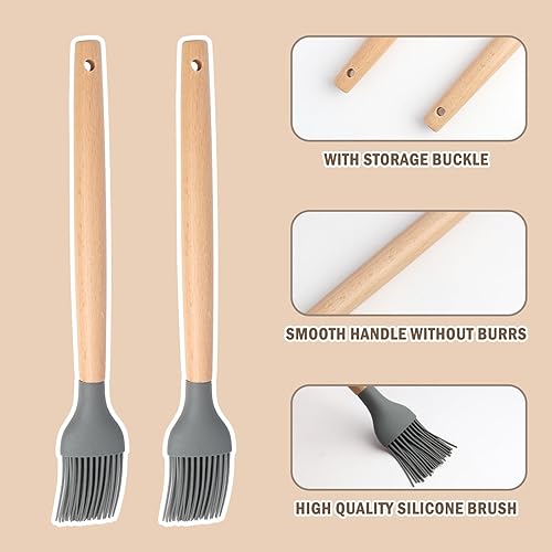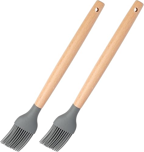 2PCS Pinceau Cuisine Silicone, Sans Plastique Pinceau Patisserie, 20 cm, Pinceau Pâtisserie Vegan et BPA-free, Résistant à la Chaleur jusqu'à 200°C, Manche en Bambou Écologique, Qualité Alimentaire