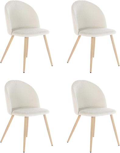 FurnitureR Lot de 4, chaises de Cuisine, sièges Confortables en Tissu Chenille pour Salle à Manger, Salon, Maison, Beige, 49x46x77CM