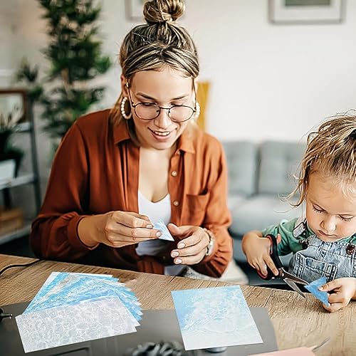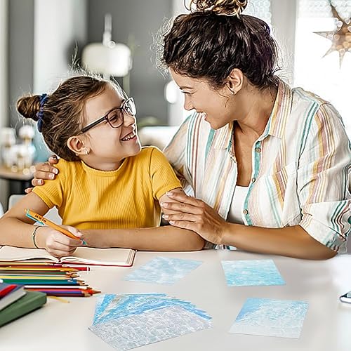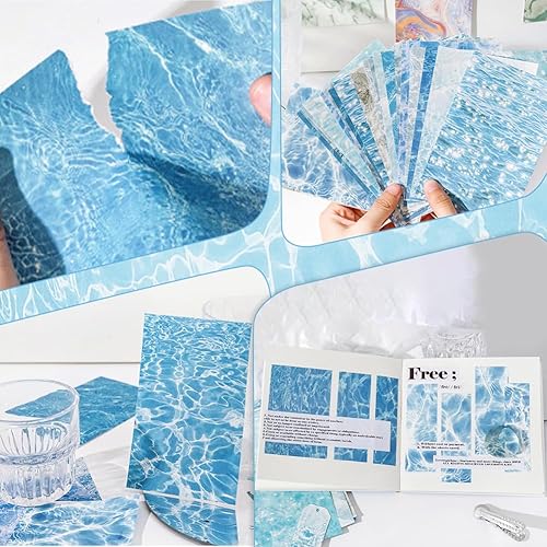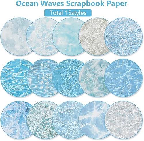PLIGREAT 180 feuille de Papier de Scrapbooking à Motifs de Vagues de L'Océan Papier Cartonné Imprimé Vagues de L'Océan Bleu Assorti pour Projets de Bricolage Anniversaire