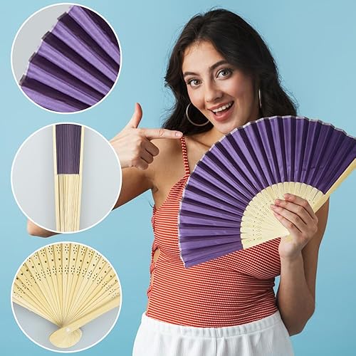 aupawdy 2 Pièce Éventail à Main Pliable, Éventails Pliants avec Frange en Soie, Eventails en Papier, Eventail Mariage Personnalisable, pour Décoration Murale, du Fête, Evènement en Extérieur