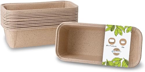 GREENBOX Lot de 25 moules rectangulaires en papier de cacao - 20 x 7 x 6cm - Passe au four - Moule à pain - Papier marron - Petits moules à gâteau - Moule en papier avec structure élégante DRE025111