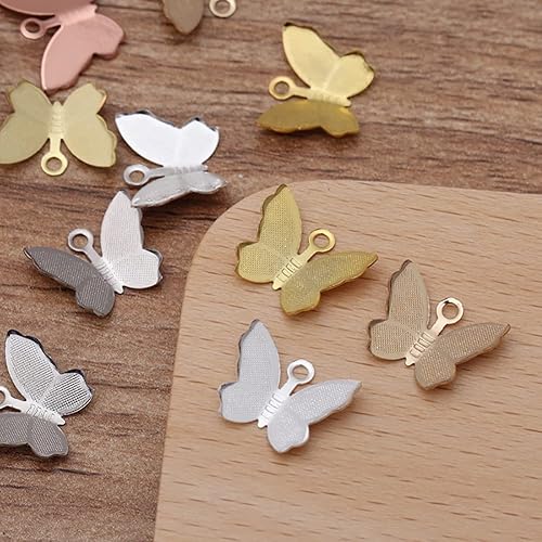 JIHUOO Lot de 200 mini breloques papillon en métal pour fabrication de bijoux - Accessoires pour collier, bracelet, boucles d'oreilles