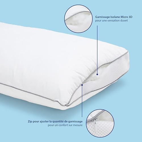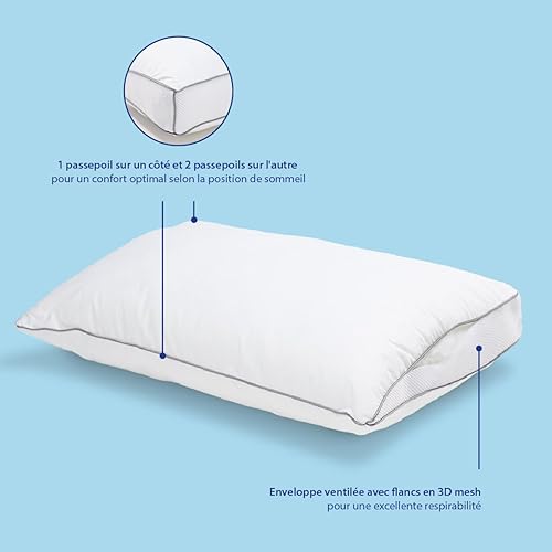Bleu Câlin Oreiller Souple Premium Ventilé 40x60cm - Enveloppe 100% Coton Percale - Multipositions de Sommeil - Fabriqué en France