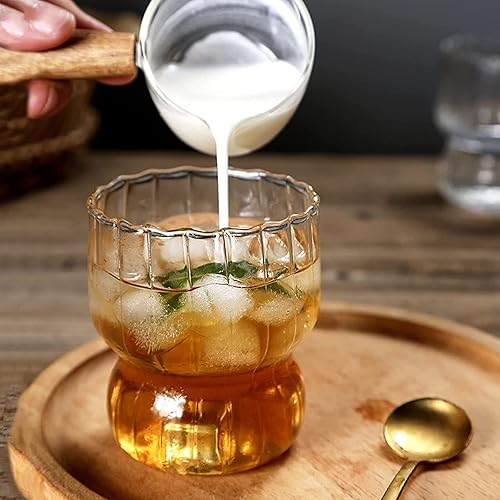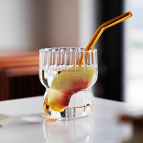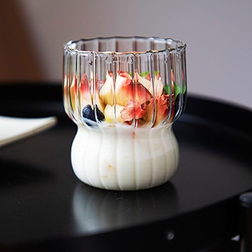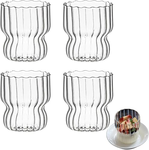4 Pièces Verres Nervurés, Tasses à Expresso, Verres à Café, Verres à Dessert, Générique Verres à Boire Nervurés, Verres à thé Ondulés, pour Latte, Thé, Glace, Lait, Bière