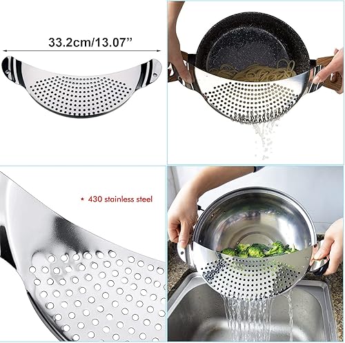 Passoire Égouttoir pour Casserole Passoire Égouttoir en Acier Inoxydable Poêle Passoire Passoire Filtre en Casserole Poêle Égouttoir pour Casserole pour Tous Les Pots et Bols pour la Cuisine 2pcs