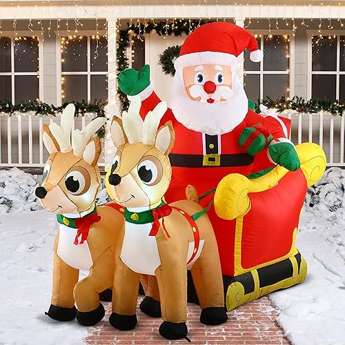 Joiedomi Père Noël Gonflable sur Un Traîneau, 1.83m de Long, avec l'éclairage LED, Cadeau de Noël Gonflable, pour Décoration de Jardin d'intérieur/extérieur
