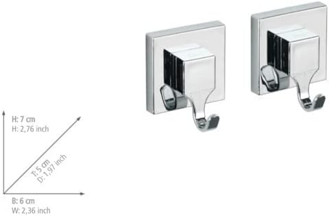 WENKO Vacuum-Loc® Crochet Angulaire, Lot de 2 pièces Set de 2, Crochet Porte-Serviettes, Crochet pour vêtements, Fixer sans percer de Trous Chromé