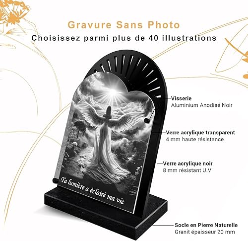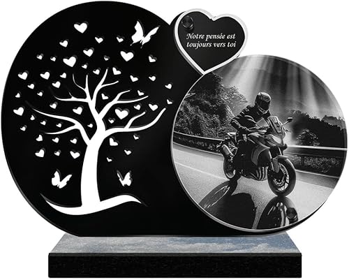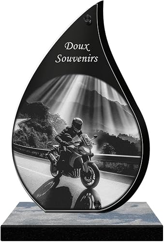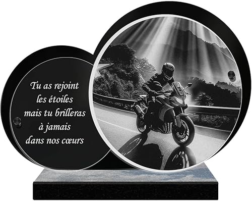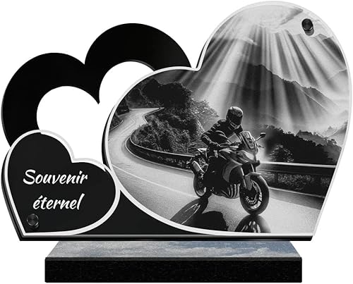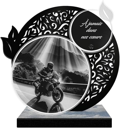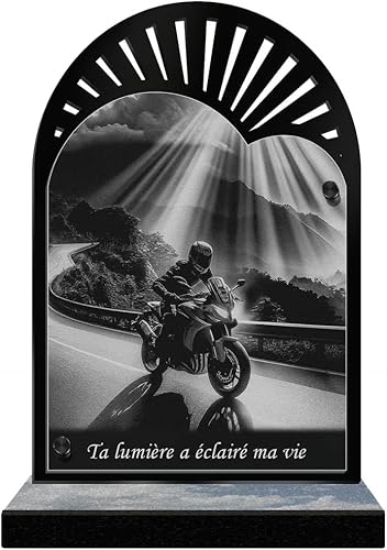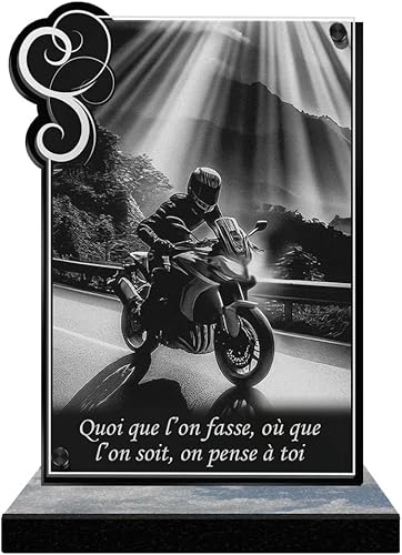 ETERNEL - Plaque Funéraire Personnalisée Cadre Ornements - Motard, Moto, Pilote - Texte Personnalisable, Plaque Funéraire Gravée au Laser Hommage, Plaque Tombale, Mortuaire, Cérémonie, Commémoration