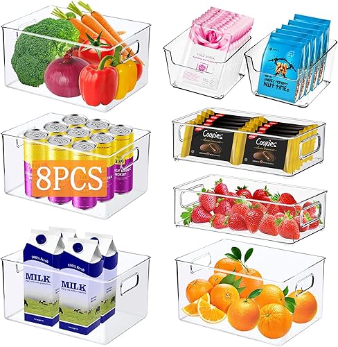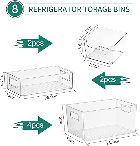 JOYBOY Boîte de Rangement Frigo,Ensemble de 8 Pièces Bac Rangement, pour Réfrigérateur,Cuisine,Garde-Manger,Armoires et Comptoirs etc-sans BPA(Transparents)