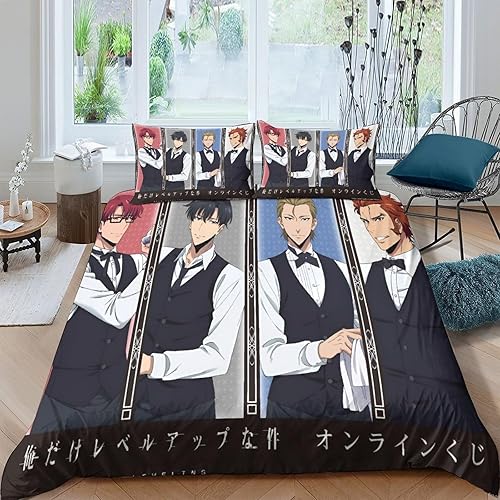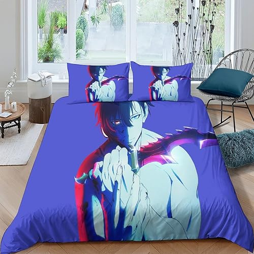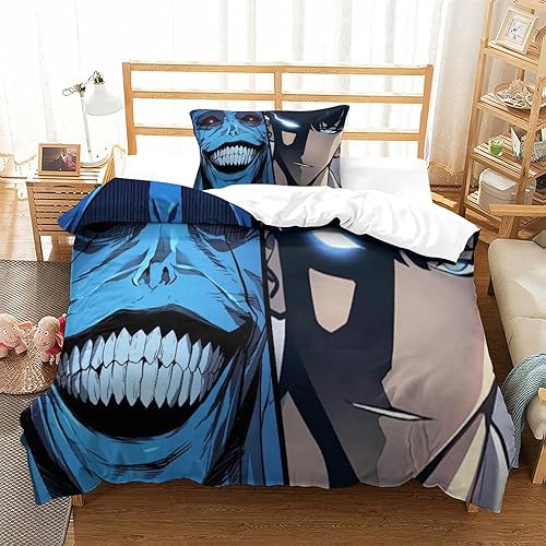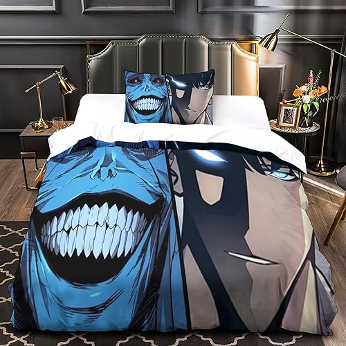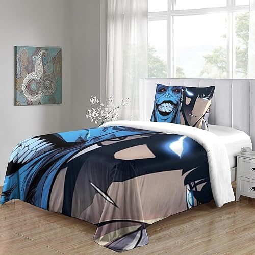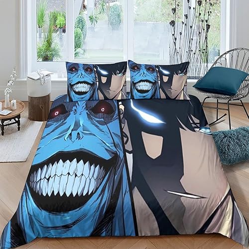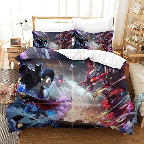 SUFFERBOW Solo Leveling pour Adultes Et Enfants Housses De Couettes Housse De Couette 3D Imprimé Sung Jinwoo Microfibr E avec Fermeture À Glissière avec Taies Parure De Lit 3 Pièces King(220x240cm)