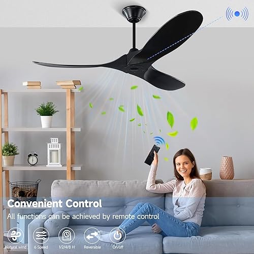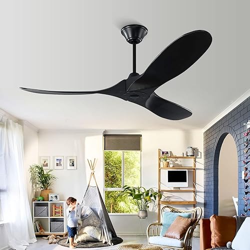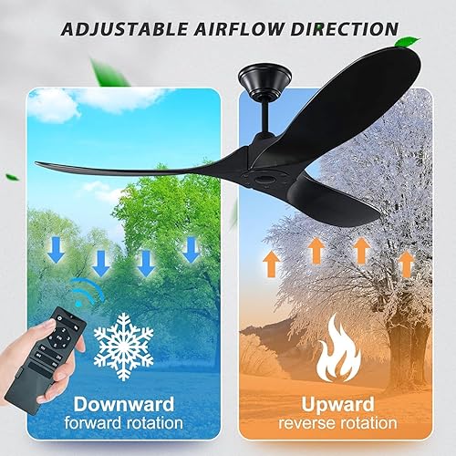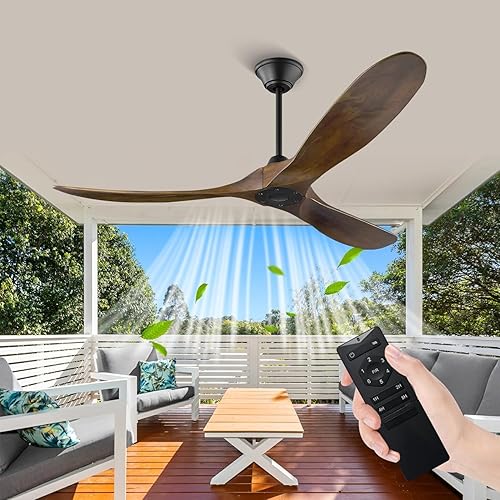 Ventilateur de plafond sans lumières avec télécommande, ventilateur de plafond en bois à 3 lames avec moteur CC réversible silencieux, ventilateurs de plafond d'extérieur pour terrasses (noyer 152cm)