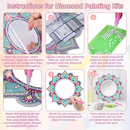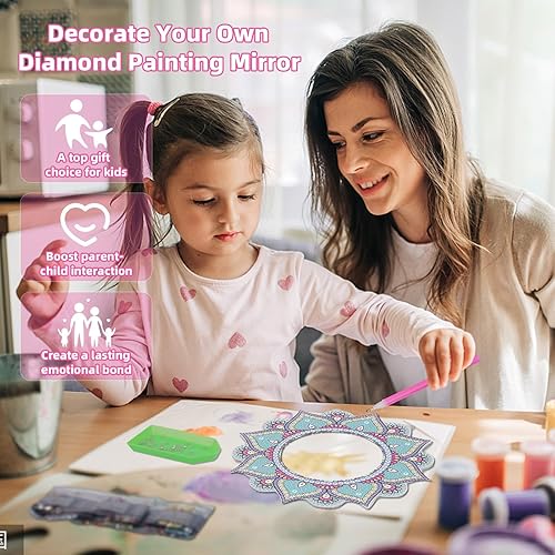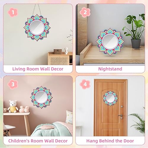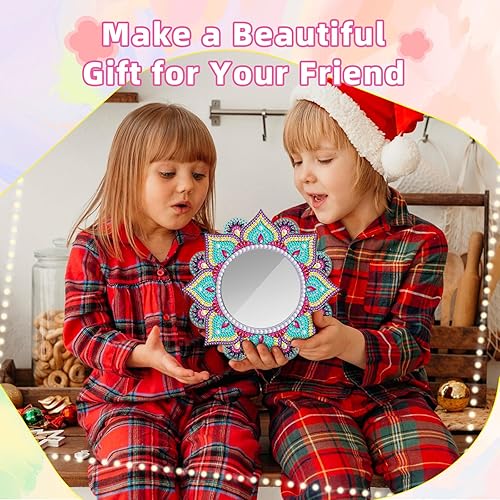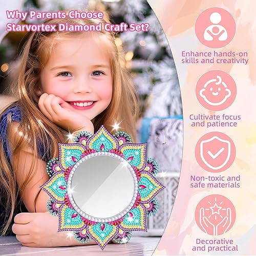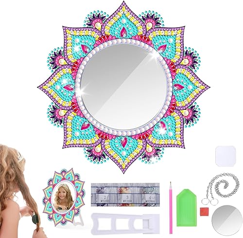 Starvortex 5D Diamond Painting Mirror Kit, Décoration en Cristal pour Loisir Creatif Enfant, Mandala DIY Miroir Maquillage, Activité Manuelle Enfant, Kit Creatif pour Cadeau Fille 6-12 Ans (Style B)
