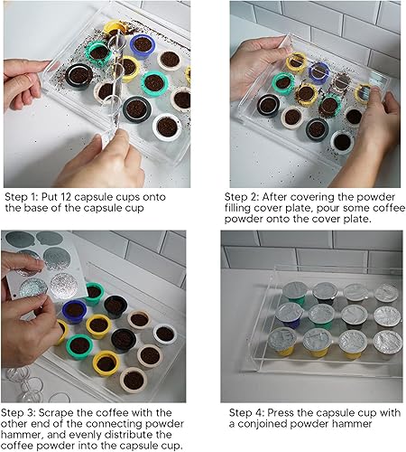Planche de Remplissage de Capsules de café 37mm, Ensemble d'outils Manuels pour Capsules de café à 12 Trous avec Doseur en Acrylique Réutilisable