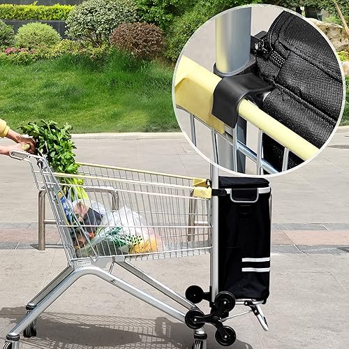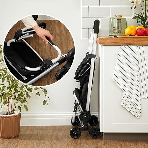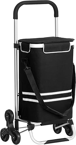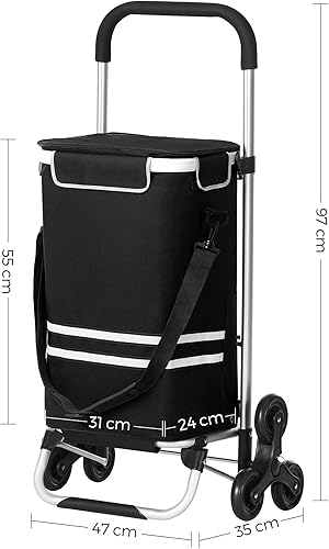 SONGMICS Caddie 6 Roues, Poussette de marché, Chariot de Course Pliable, adapté aux escaliers, avec Sac Isotherme, Grande capacité 35L, Sac Amovible, Noir KST007B01