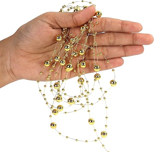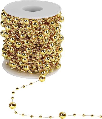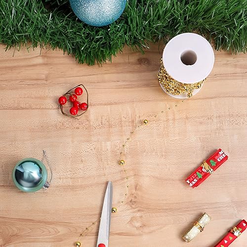 Belle Vous Guirlande de Perles de Noël Dorée - Ruban Perle de Noël Dorée de 20 m pour Décorations de Table et Sapin de Noël, Confection de Bijoux, Artisanat & Décors Festifs