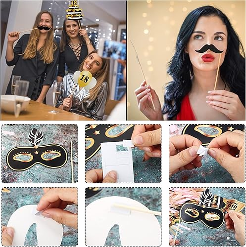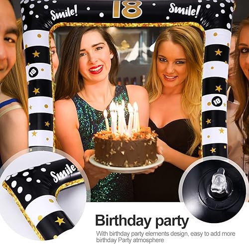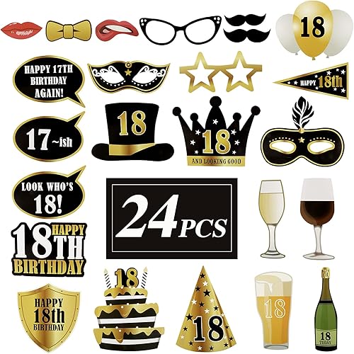 25PCS Accessoires de Photomaton Anniversaire 18Ans Photobooth avec Cadre Photocall Gonflable Rétro Cabine Noir Doré Props Accessoires de Selfie Décoration (18 Ans)