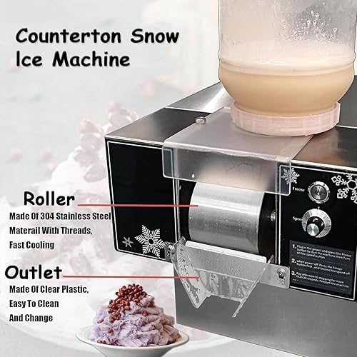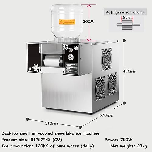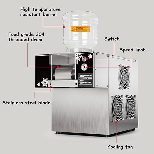 Machine à glaçons commerciale 120 kg/24 h, machine à cônes de neige électrique de table 750 W, machine à glace en flocon de neige, vitesse réglable, pour glace en flocon de neige