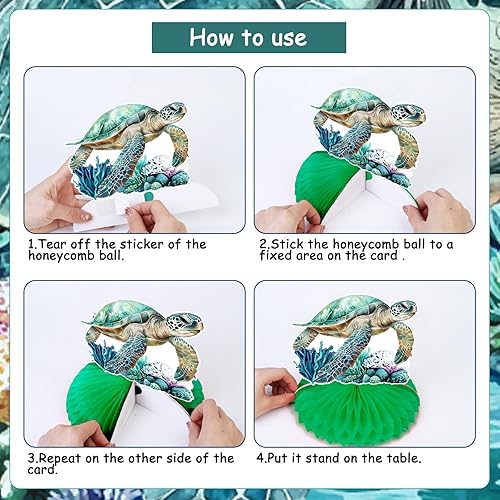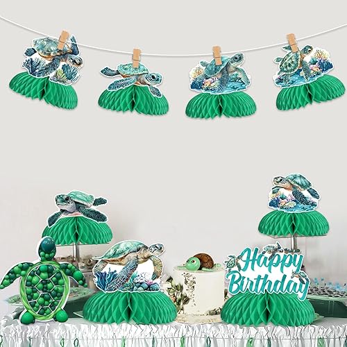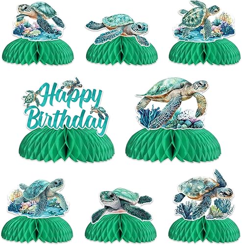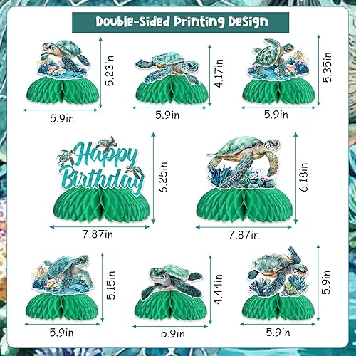 Jollyboom Lot de 8 décorations d'anniversaire en forme de tortue de mer, centre de table double face sur le thème marin, décoration de table pour fête d'anniversaire, fête prénatale