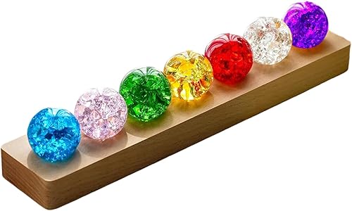 iFCOW Boules de cristal chakra 7 couleurs 40 mm avec base en bois LED pour décoration de chambre à coucher, salon