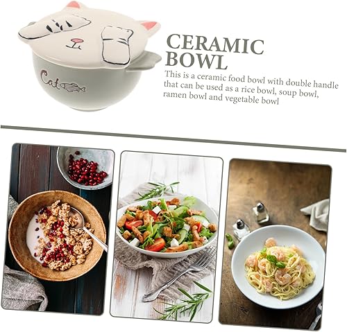 PHENOFICE Bol en céramique amphore grand bol de nouilles bol à micro-ondes soupière bols avec anses bol à salade tasses à soupe avec anses bol de soupe bol en céramique réutilisable Grey