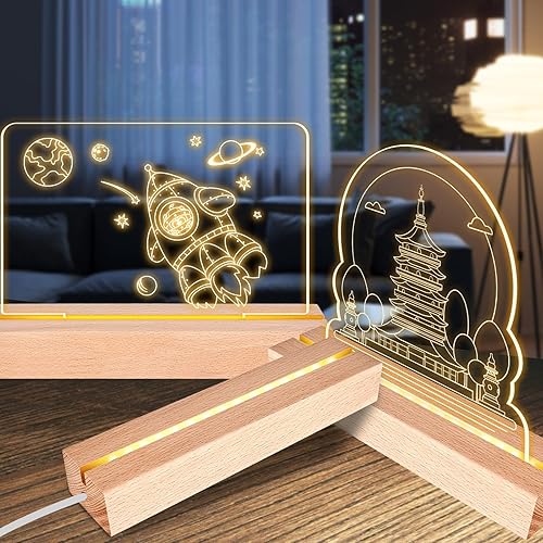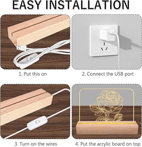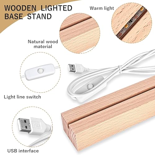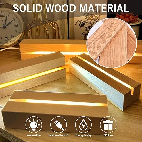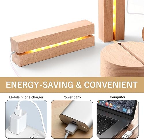 4 Pièces Socle Lumineux Led, Base Lumineuse en Bois, Socle Lumineux Led en Boule de Cristal, Base Lumineuse LED Warm Light pour L'Art du Verre, Support de Base pour ECran en Cristal Alimenté par USB