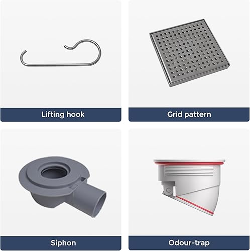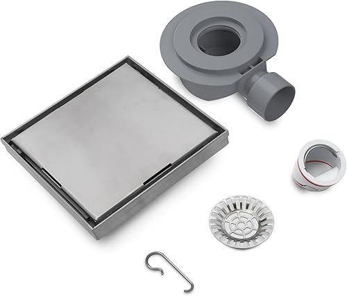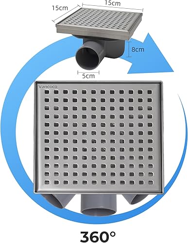 VANCOCO Acier INOX Caniveau de Douche à Carreler de 80 cm, 2 in 1 Extra Plat 360° Siphon Sol d'évacuation, avec Clapet Anti-Odeur et Filtre Anti-Cheveux