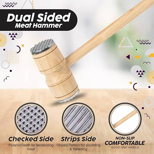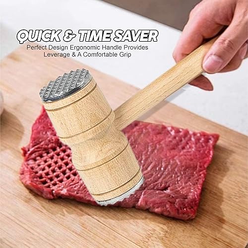 Attendrisseur de viande, marteau à viande, maillet à viande, attendrisseur de viande, maillet pour steak, poulet, volaille, bœuf, outil pour cuisine, barbecue, manche en bois, anti-taches, chef de