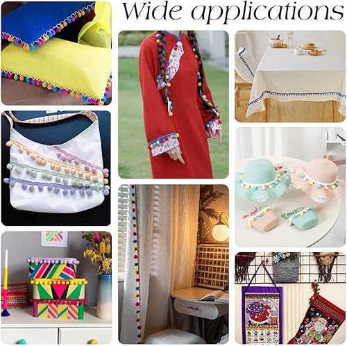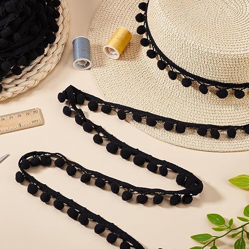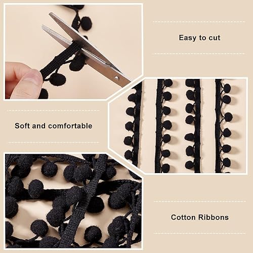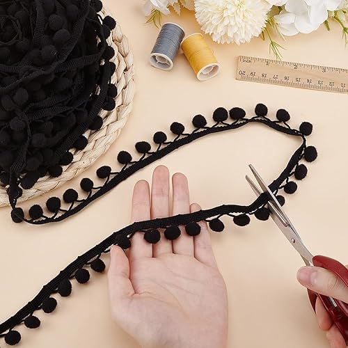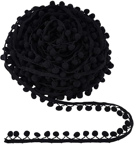 PH PandaHall 18.3m Garniture à Franges en Boules de Pompons en Coton Boule de Pompons de 13mm Triangle Noir Connexion de Dentelle pour Artisanat Couture Vêtements de Maison Oreiller